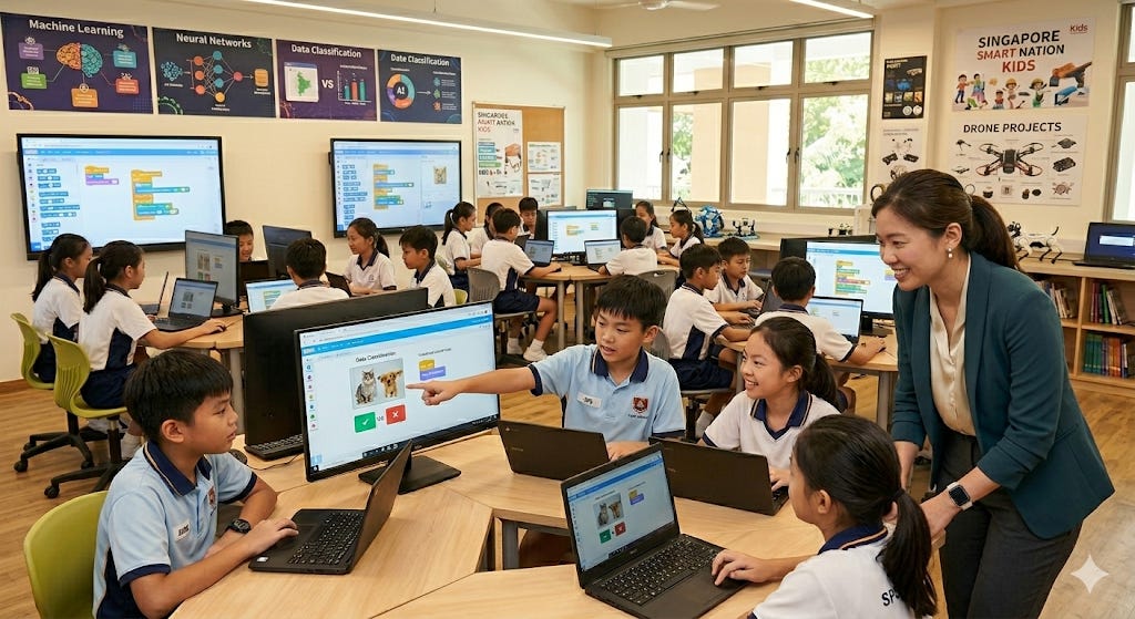 His teacher, Mrs. Lee, leaned over to get a closer look, her professional attire a sharp contrast to the students’ white uniforms. “That is exactly right, Wei Han,” she said with a nod of approval. “AI is like a digital apprentice. It requires high-quality information to develop its intelligence. You are essentially teaching it how to think.”